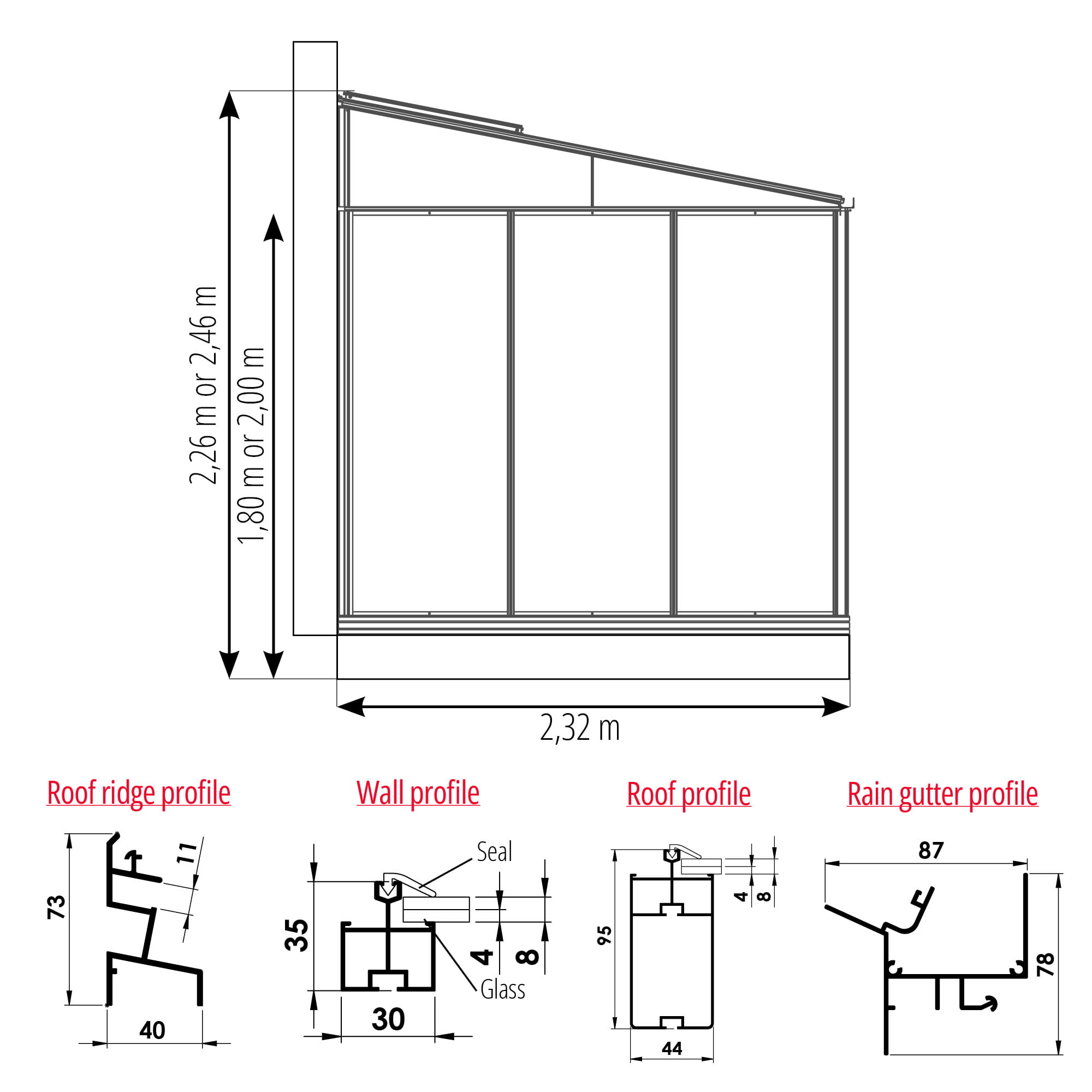 Szklarnia Przyścienna LUXIA Lean 2,32m